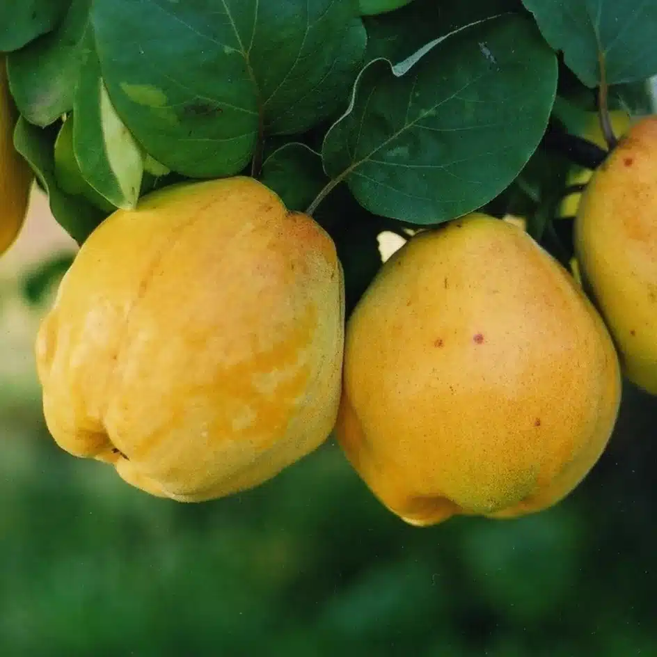 Pineapple Quince: This classic variety is named for its tropical aroma — the fruit has a bright, tangy-sweet flavor that hints at pineapple when cooked. It’s firm, fragrant, and perfect for jams, jellies, and poaching.