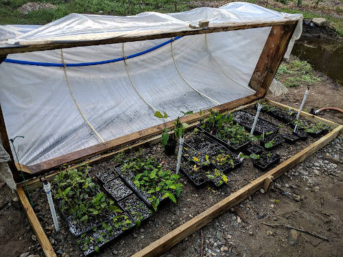 Misting bed: The misting bed is an area dedicated to propagating softwood cuttings that utilizes intermittent misting. The mist comes on for a few seconds every ten minutes or so and keeps the cuttings alive until they send out roots. Misting allows you to propagate many more species of plants with a greater success rate. One challenge with it is getting the plants to put on sufficient growth and harden off in order to survive the winter, since the growing season is much shorter, having taken the cuttings in June at the earliest. The advice I usually hear for beginners is to start by making a small humidity dome over a pot and keep spraying the cuttings with a spray bottle. Inevitably a person does not sit around with the spray bottle all day and the results are usually less than ideal. If you’re serious about plant propagation, it’s well worth the investment to get a timer that’s programmable in seconds that automatically sends out mist for you.